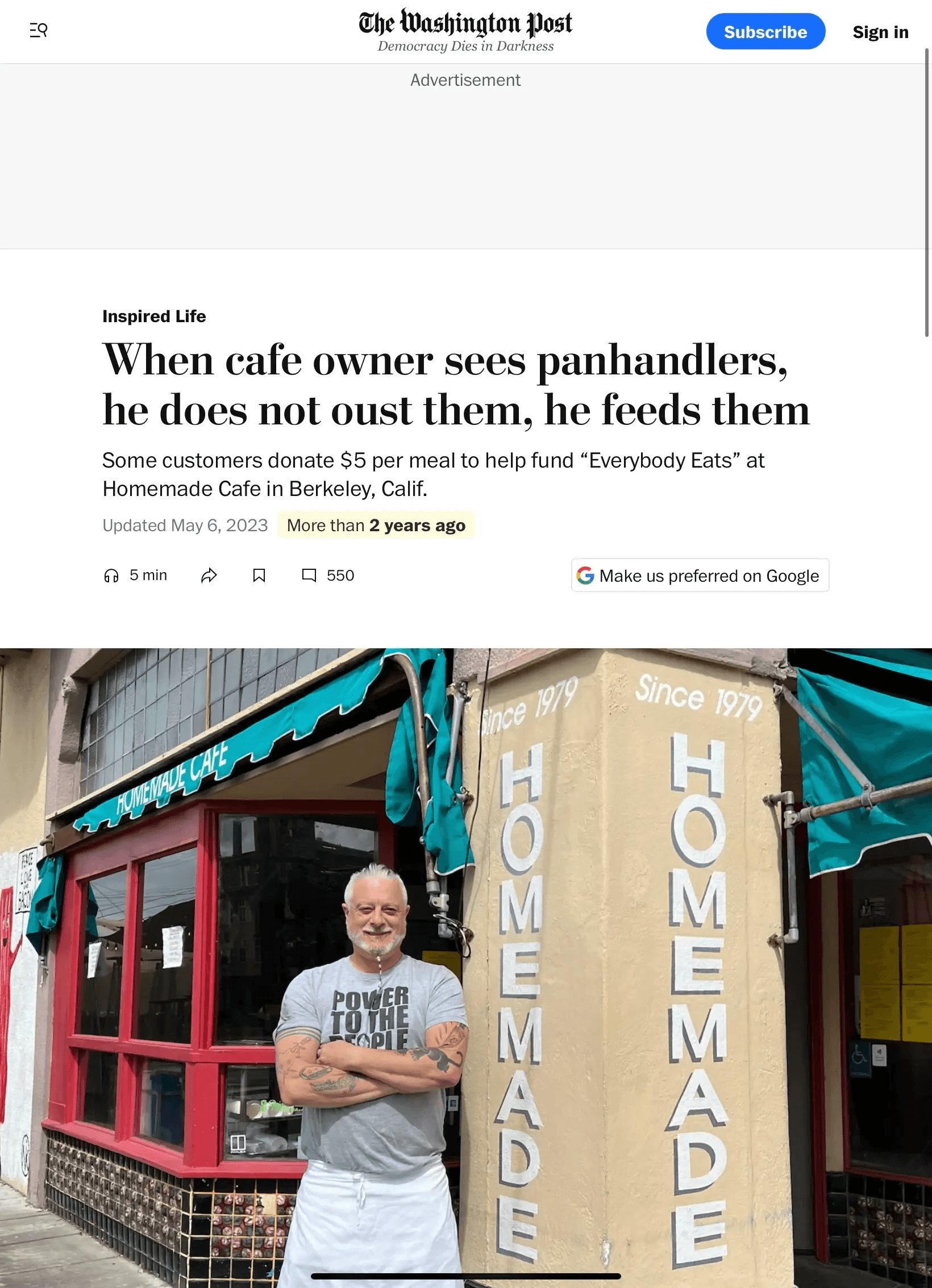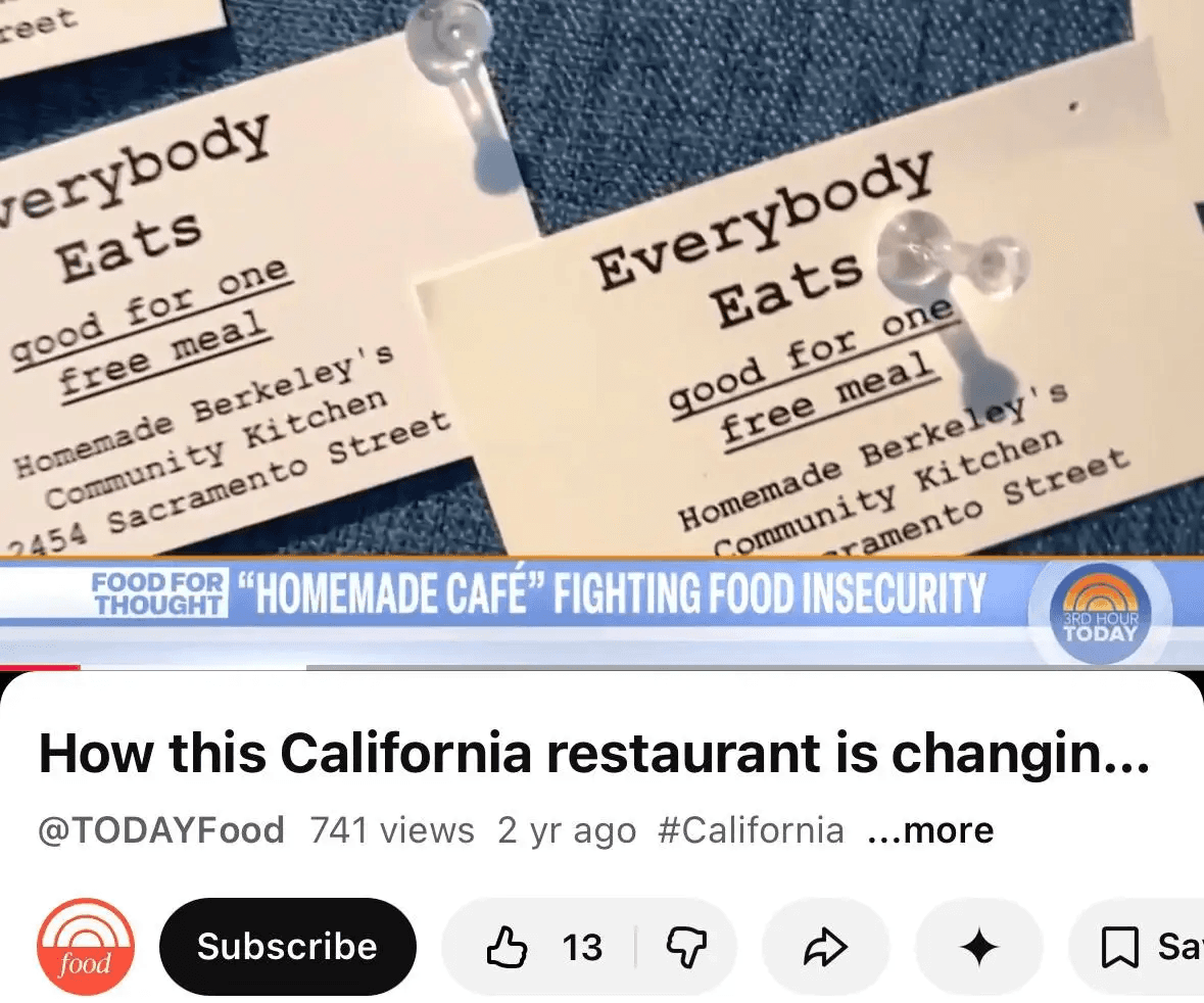 “Everybody eats” initiative got national coverage and became a country hit. We built on the belief that access to food should never be conditional. No money to get your food? You could come to eat at the cafe and no questions would be asked. It was featured on Today show, Berkelyside and CNBC.